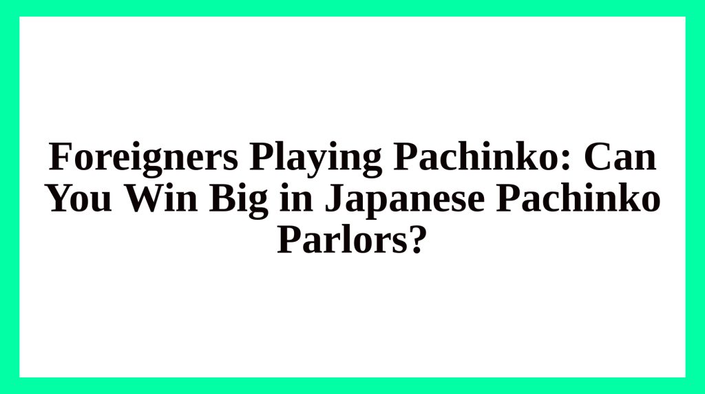 Foreigners Playing Pachinko: Can You Win Big in Japanese Pachinko Parlors?
