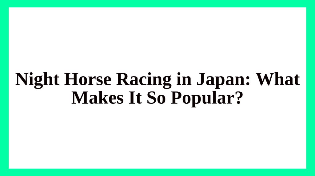 Introduction to Night Horse Racing Night horse racing, also known in Japan as “Twinkle Races,” has become one of the most thrilling spectacles for fans and bettors alike. While traditional daytime races dominate globally, Japan has pione... -