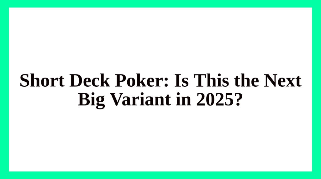 Short Deck Poker: Is This the Next Big Variant in 2025?